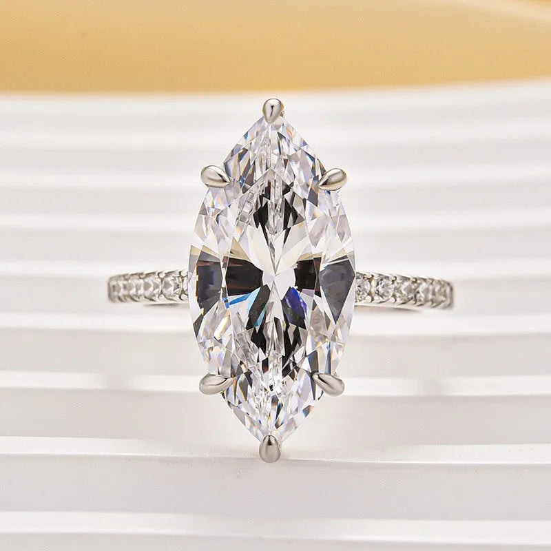 S925 Sterling Silver Marquise Cut Engagement Ring