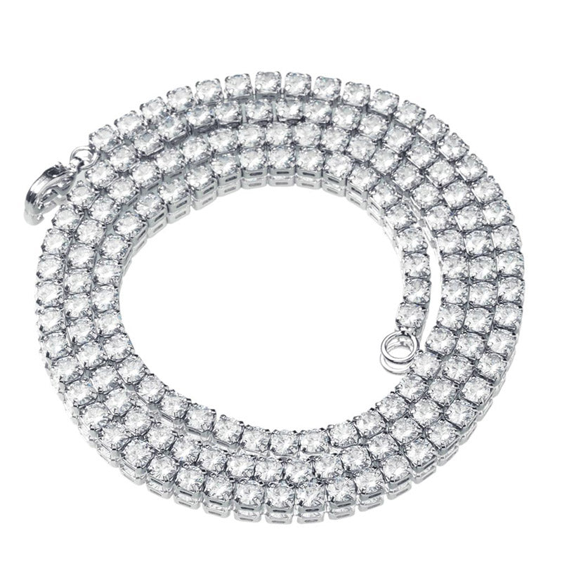 "Eternally stylish ~ shine endlessly with the 3mm Tennis Chain in White Gold. If you’ve never considered a tennis chain, this is the one that will change your mind. Adorned with crystals all around, it offers a radiant finish that will earn you compliments on any occasion. Wear it solo for a sleek, minimalist look or layer it with other necklaces to add a sparkling touch to any outfit.