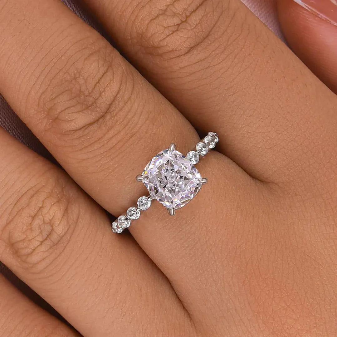 A one of a kind Square engagement ring.A stunning Square diamond set on a unique & delicate diamond studded band. Handcrafted.