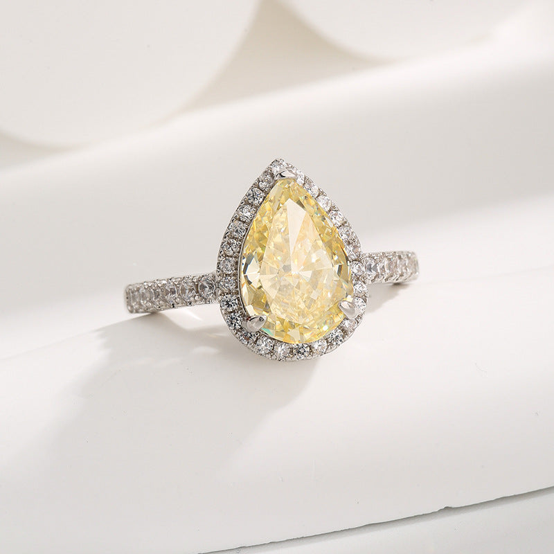 Vintage Pear Cut Cyan Blue Sterling Silver Engagement Ring In Rose Golden Tone