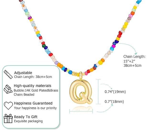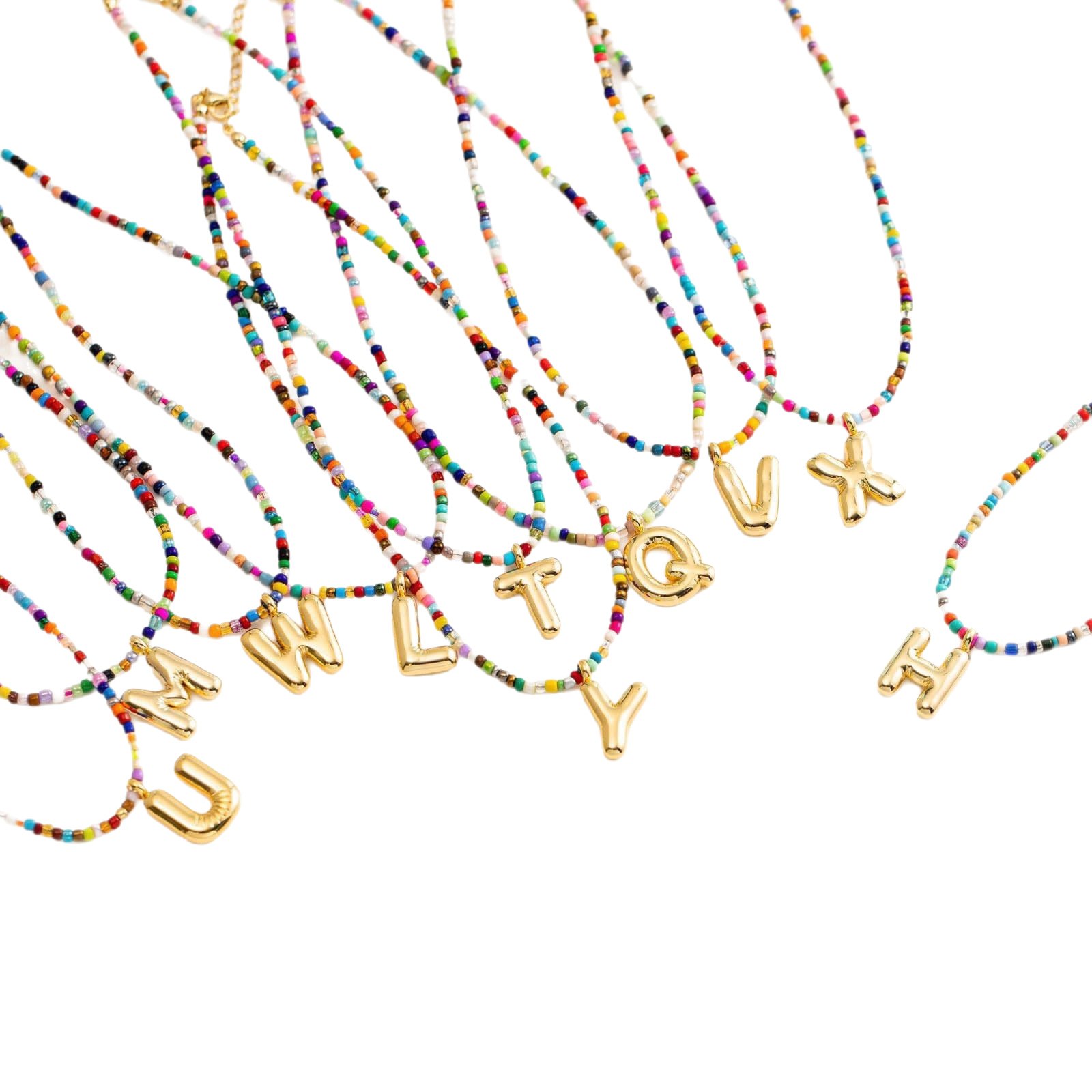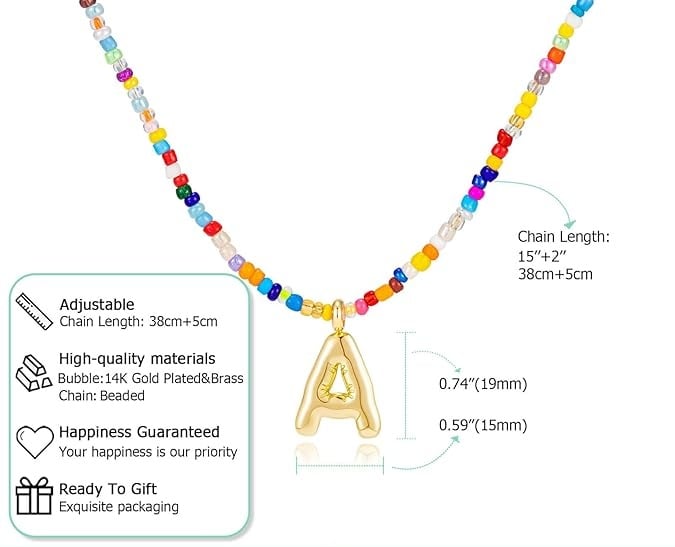 Make it personal. This handcrafted beaded necklace features your choice of initial (A–Z) in a playful bubble letter charm, finished in radiant 14K gold plating. Whether it’s your name, your best friend's, or a loved one’s — this necklace adds a heartfelt touch to your everyday style.