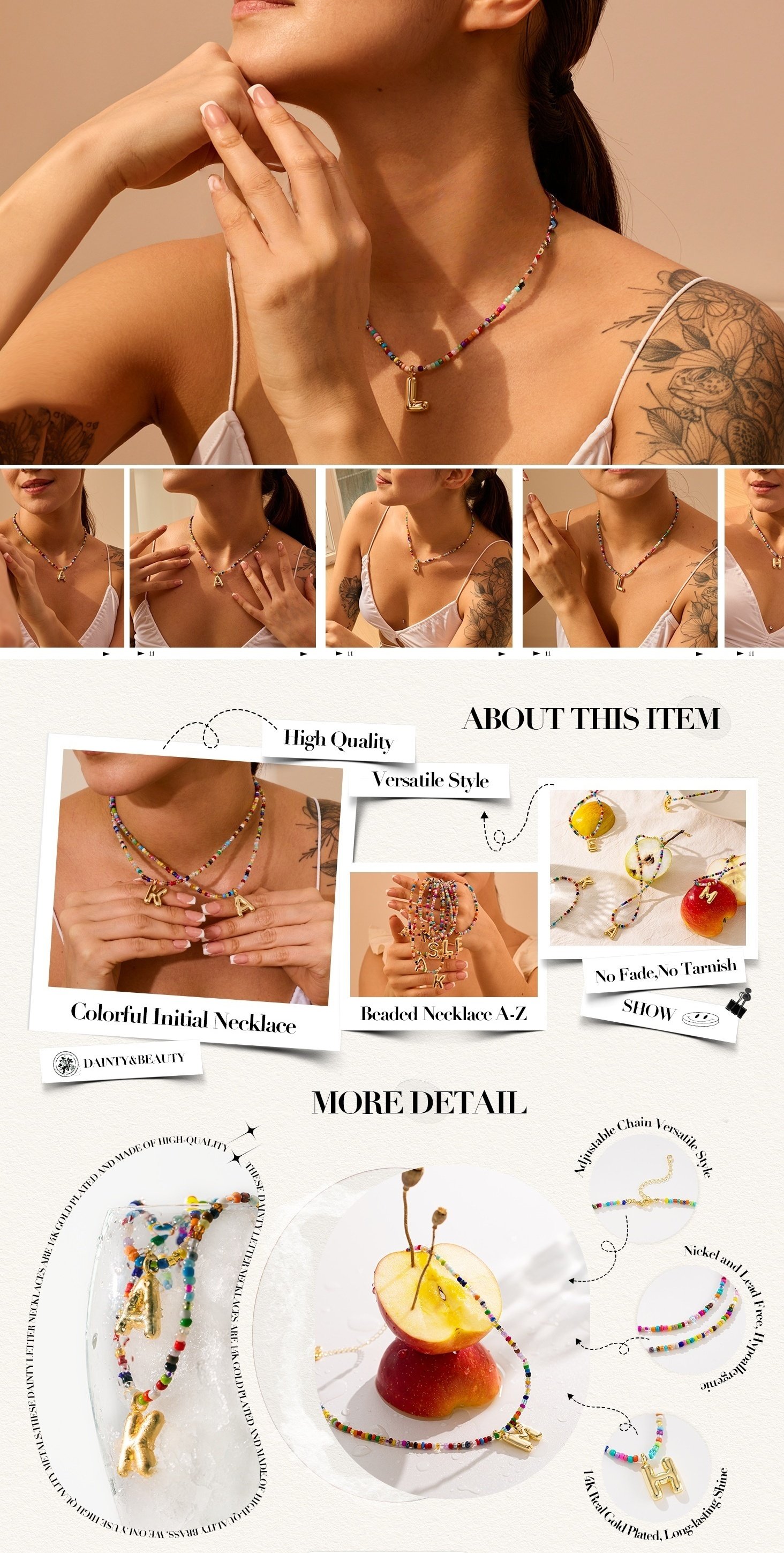 🌟 Personalized Beaded Initial Necklace – Colorful, Custom, Meaningful
